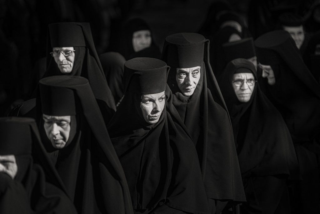 U fokusu nije događaj, već odsustvo žurbe. Nema drame — ali ima sabranosti. Svetlost, senke, teksture zidova, tišina između zvona i prisutnost monaha pretvaraju se u ikonopis svakodnevice.